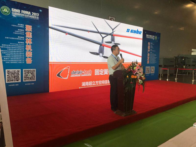 超立方總經(jīng)理王大威攜明星產(chǎn)品固定翼無人機發(fā)表演講