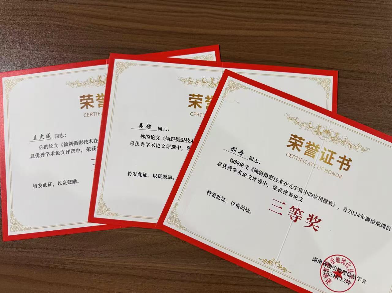 同時(shí),在本次大會上還頒發(fā)了2024年測繪地理信息優(yōu)秀學(xué)術(shù)論文獎,湖南超立方空間信息技術(shù)有限公司的王大威、吳超、劉丹三位優(yōu)秀工作者,以論文《傾斜攝影技術(shù)在元宇宙中的應(yīng)用探索》榮獲2024年測繪地理信息優(yōu)秀學(xué)術(shù)論文三等獎。