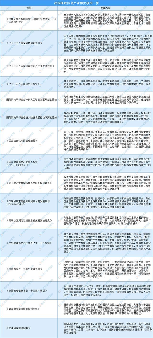 近年來,我國重視地理信息產業(yè)的發(fā)展,多項政策文件帶來利好: