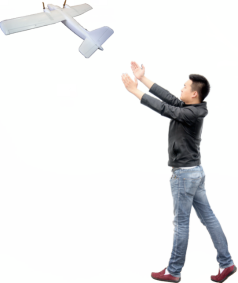 飛行計(jì)劃上傳到無人機(jī)內(nèi),自動(dòng)起飛模式下,操作者只需要將飛機(jī)拋入空中即可,完全不需要發(fā)射架、彈力繩者其他任何輔助裝置。操作就是如此簡單、輕松。